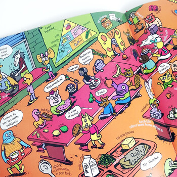 画面乍一看是铺天盖地的小物品,极富有冲击力,仔细去观察就能发现其中隐藏着极多的细节,每个形象都富有个性,处处都流露出幽默,表现出生活的多姿多彩,每一页画面都是围绕儿童生活的方方面面展开,既亲切又生动有趣,还可以玩查找游戏。