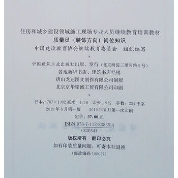 本书适用于质量员(装饰方向)的继续教育,同时可供相关专业人员参考。