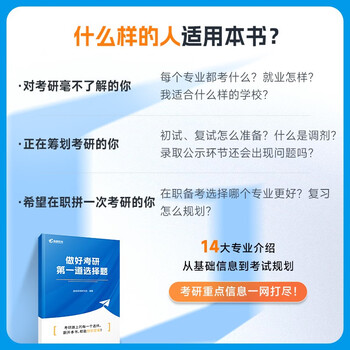 本书围绕考研的全程编写,针对初试备考、择校择专、复试调剂等各种问题均做了详细解答。第一章从考研的性质到考试科目,在解答考研基础问题的同时又做了引申,给出学生中肯的建议。第二章在整理考研十四大学科门类的同时,结合就业这一主线详细介绍了每个学科的就业方向、就业现状、就业前景及未来发展趋势等,帮助学生更好的选到适合自己的专业。第三章《实战篇》,全方位多角度解读考研初试、复试和调剂,在对不同学校的研究基础上,给出了实用的建议以及成功的“秘籍”。同时,书中还单独对在职考研做了介绍,帮助考研人更全面地了解考研。