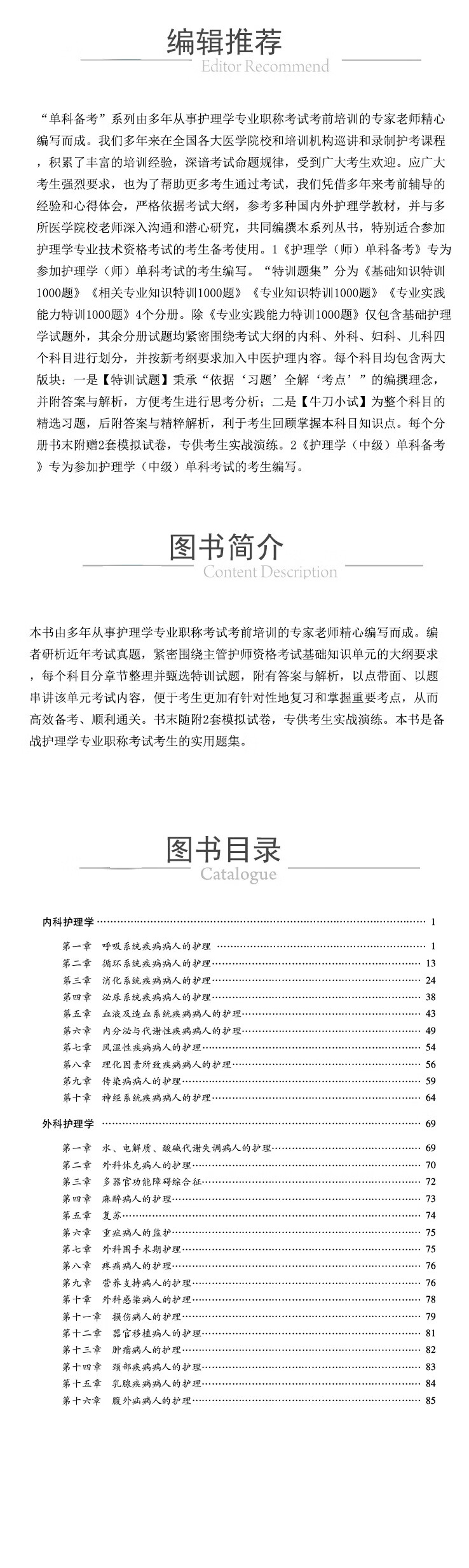 夏桂新,女,北京协和医学院临床医学硕士,任职于中国医学科学院血液病研究所。从事执业医师资格考试考前辅导和护考辅导10年。全国面授巡讲千余场,是当今最具实力的优秀名师之一,深谙护士执业资格、护理学职称、护理学考研、医师资格考试出题规律及命题特点,讲课过程中善于化繁为简、内容通俗易懂,并参编多本医学、护理学考试类图书,所编书籍实用性极强,受到广大考生欢迎。