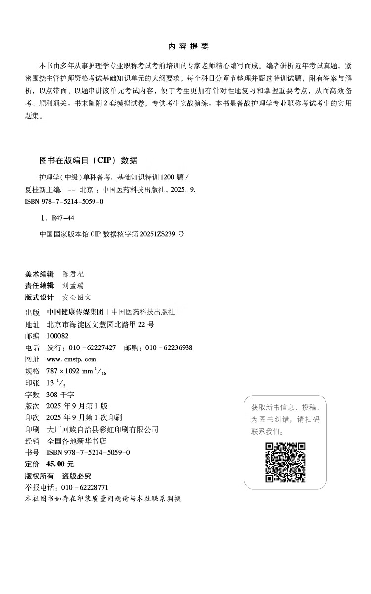护理学(中级)单科备考——基础知识特训1200题(2026护考应急包)