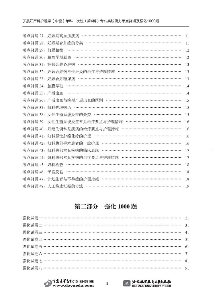 本书是护理学(中级)资格考试的复习参考用书,主要为上一年度主管护师亚专业妇产科护理(代码371)第4科(专业实践能力)考试未通过的考生编写。全书分为考点背诵和强化试题两个部分。考点背诵部分根据考试大纲对单科目考核的内容要求和历年考试命题情况编写,主要从妇产科疾病的临床表现、治疗要点和护理措施等几个方面作了较大跨度的知识总结和归纳,方便考生强化理解和背诵;另外还涉及到少数跨科目的辅助检查、病因及发病机制、解剖生理和病理生理等内容,以确保单科复习的系统性和完整性。强化试题部分精选1000题,共10套试卷,供考生专项实战模拟,1000题均配有原创解析,对有干扰价值的选项逐项对比解析,帮助考生深刻理解考试重点。本书也可供首年参加考试习惯拆分为单科报考和复习的考生使用。