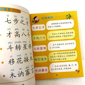 《成语接龙小宝典》书以成语接龙为主。每组成语接龙以最常见的成语开始,并配上相符的图片和简单的解释,每组成语接龙有5个成语。大字注音,读起来朗朗上口,方便孩子记忆。