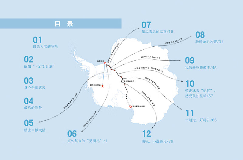 我想,很多人对于世界的整体认知,应该是从地球仪开始的。当我还是个孩子的时候,我经常在地球仪上找寻中国的位置及亚洲的范围,接着是欧洲、非洲、大洋洲、北美洲、南美洲。这些形状各异、被蓝色海水包围的彩色陆地就是我们人类的家园。然而,随着我慢慢长大,一片纯白的陆地却深深地把我吸引住了。它位于地球仪的最底端,没有其他大陆那样醒目的颜色,只有白茫茫的一片,看起来是那样遥不可及。那片陆地上面清晰地印着3个大字——南极洲。小时候的我从来没想到,就在2020年伊始,准确地说是2020年1月9日,我竟然站在了那片白色大陆的中心——南极点,完成了人生的第一次南极探险,成为了首位独步南极的中国人,也创造了单人无助力、无补给抵达南极点最长路线的世界纪录……