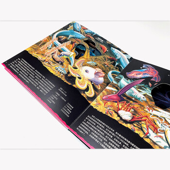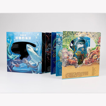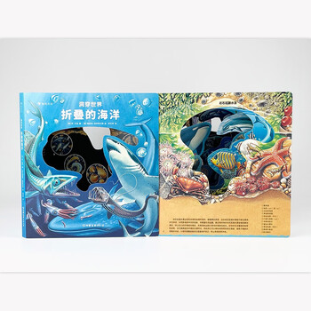 拉开折叠的书页,全长近3米,每一页都有不一样的模切设计,工艺精细复杂。将约占地球表面积一半的两片海洋浓缩在不足0.01立方米的小小空间里,用镂空挖洞设计展现了大西洋和太平洋从表层到海底的海洋生物景观,把充满危险又难以实现的海洋探险之旅转化成孩子可以反复环游的快乐旅程,不仅让科普知识更有趣味性,同时也有更多玩法,更有观赏性和收藏价值。