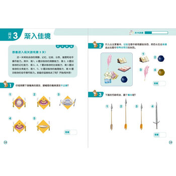 本级共10关,每关12题,包含训练孩子动手操作、观察、对比、联想、记忆、比较、分类、推理、空间想象和综合运用等十大思维能力的题型,涉及50多种题型。书后附有10关的题目答案。