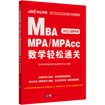 印刷批次不同,图书封面可能与实际展示有所区别,增值服务也可能会有所不同,以读者收到实物为准《中公版·2022全国硕士研究生入学统一考试MBA、MPA、MPAcc管理类专业学位联考综合能力专项突破教材:数学轻松通关(全新升级)》具有如下几大特色: