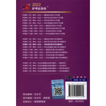 《护理学(师)单科一次过:专业知识拿分考点随身记/2022护考应急包》采用双色排版,套色突显重中之重。开本小巧,内容精练,携带方便,随时记诵,是参加护理学(师)考试考生备考冲刺的得力助手。