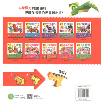 《恐龙公园/有趣的情景立体手工》是一本适合4-6岁儿童的手工游戏书,内容包括霸王龙、三角龙、翼龙、腕龙、剑龙、硬椎龙、肿头龙、棘龙等多种恐龙,孩子们只要按照书内说明的制作方法,将恐龙撕下来,折叠,按序号顺序粘贴,便可以制作出有趣的恐龙模型。同时,书内还有很多可以折叠的小制作,如恐龙蛋、火山、苏铁树等等,制作方法简单,容易掌握,内容丰富,可大大提高孩子们的动手能力及想象力。