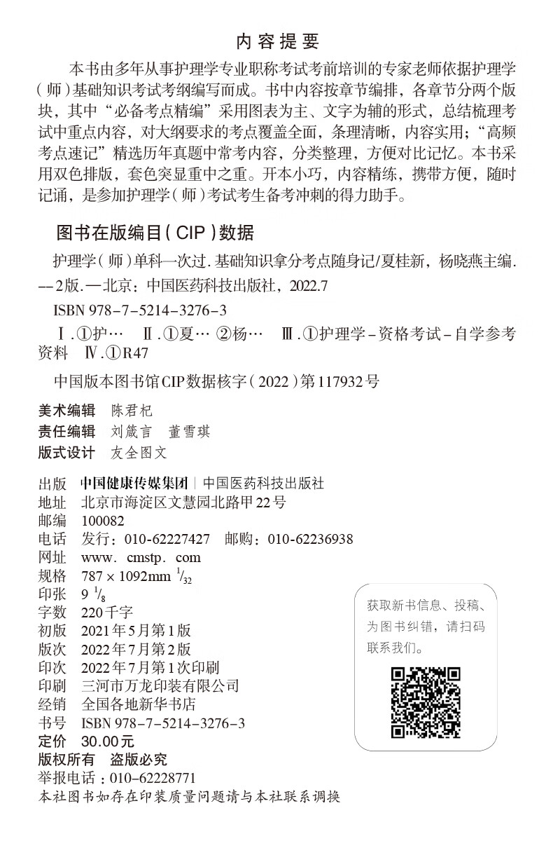 护理学(师)单科一次过——基础知识拿分考点随身记(第二版)(2023护考应急包)