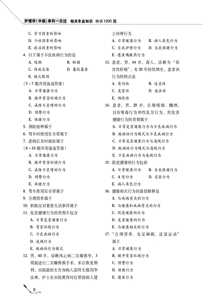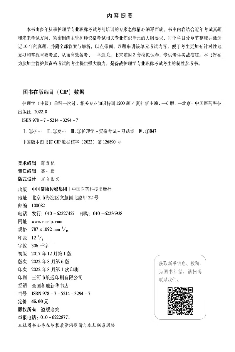 护理学(中级)单科一次过——相关专业知识特训1200题(第六版)(2023护考应急包)