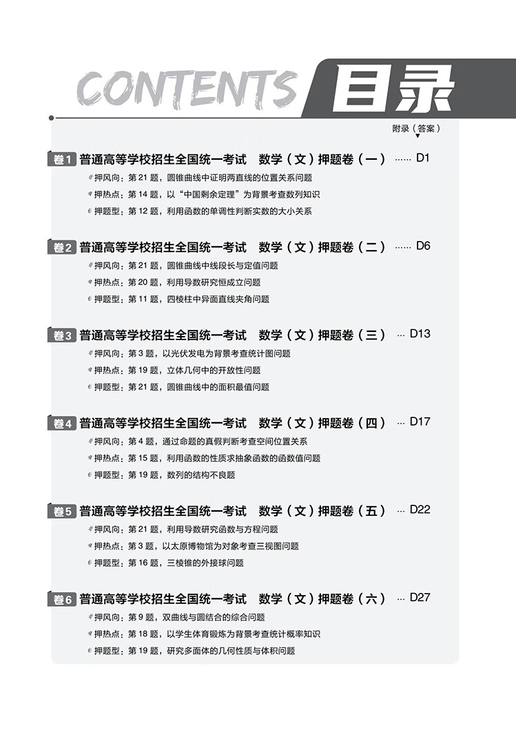 高考必刷卷押题卷 考前冲刺提分 数学(文)(全国版)2022新高考 理想树