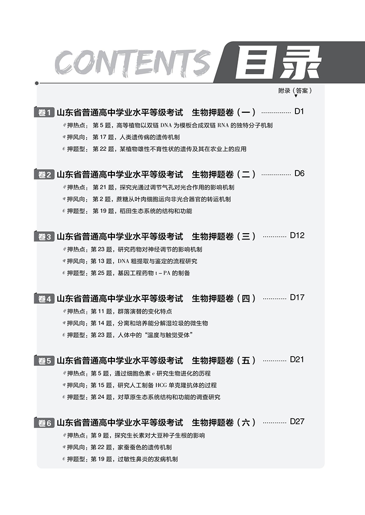 高考必刷卷押题卷 考前冲刺提分 生物(山东专用)2022新高考 理想树