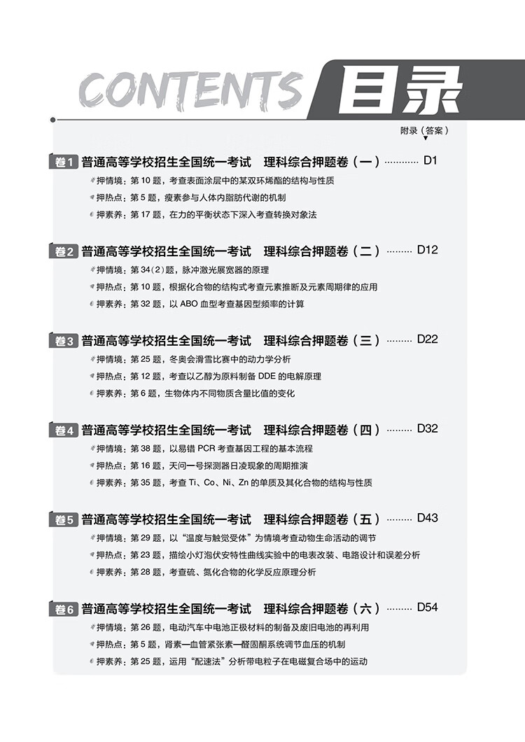 高考必刷卷押题卷 考前冲刺提分 理科综合(全国版)2022新高考 理想树