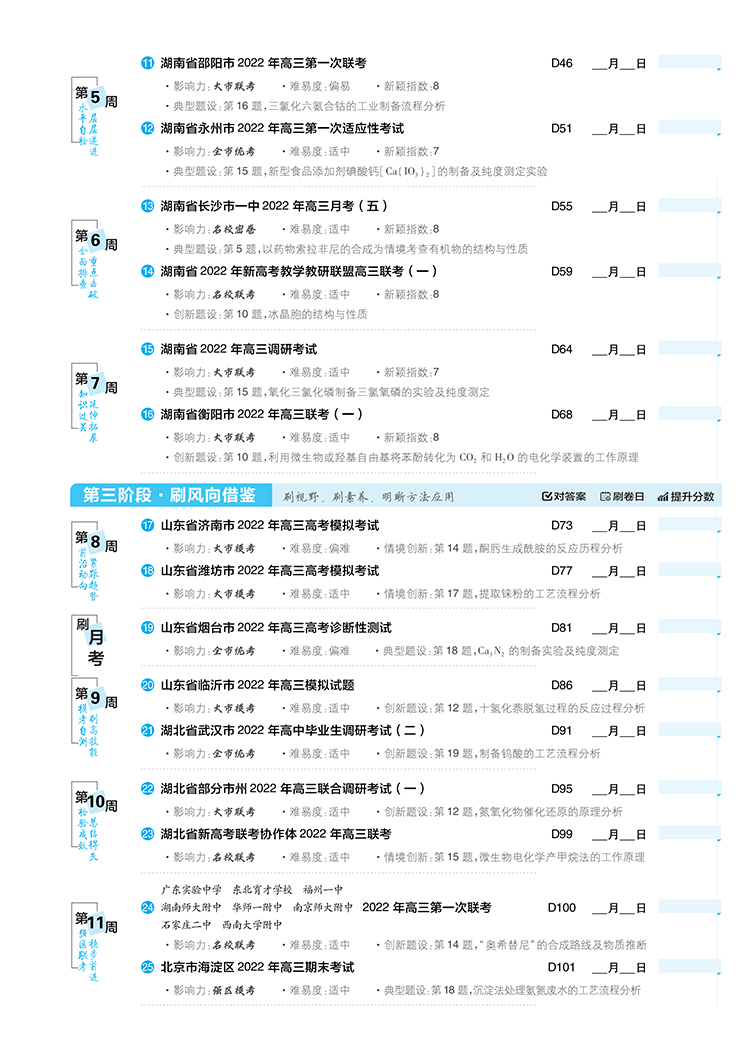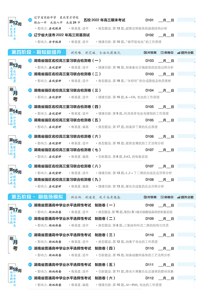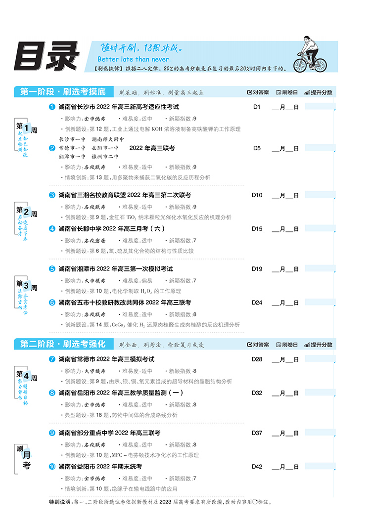 高考必刷卷42套化学强区名校模拟卷汇编(湖南专用)理想树2023版