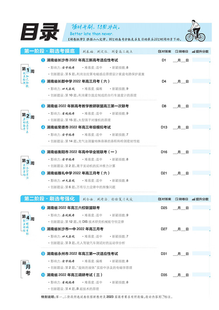 高考必刷卷42套物理强区名校模拟卷汇编(湖南专用)理想树2023版