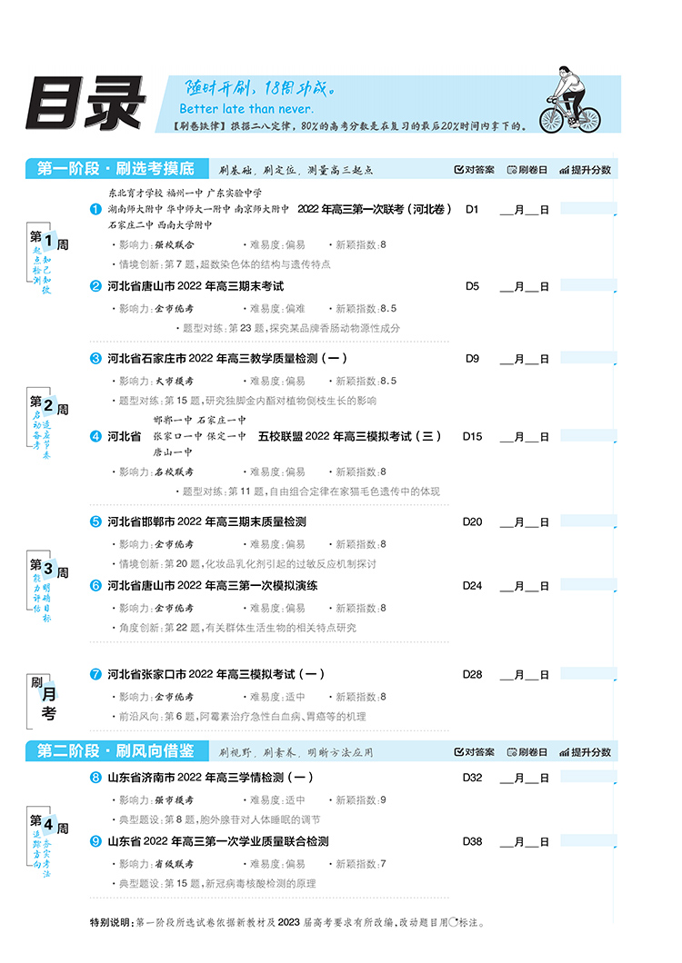 高考必刷卷42套生物强区名校模拟卷汇编(河北专用)理想树2023版