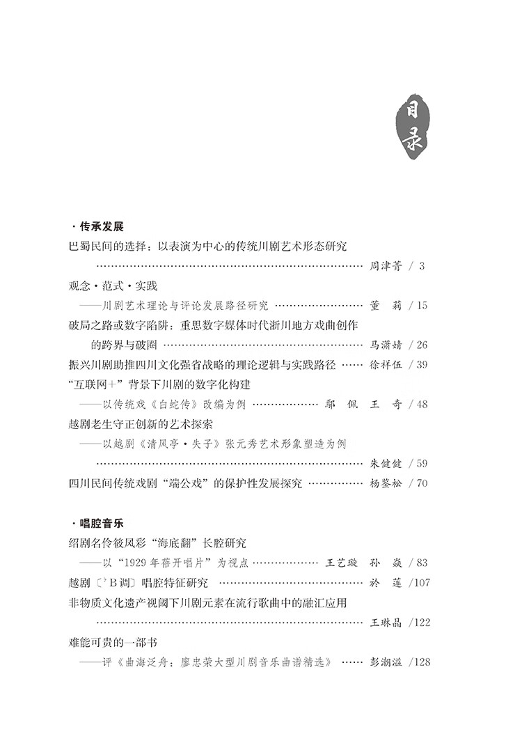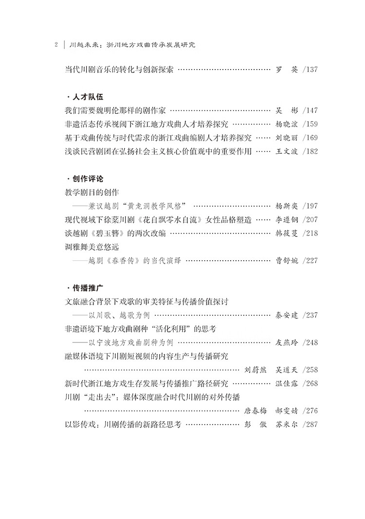 本书为戏剧艺术研究性文集,体现了2023年四川省艺术研究院与浙江省文化和旅游发展研究院共同举办的一系列浙川地方戏曲传承发展学术交流活动形成的理论成果。全书分传承发展、唱腔音乐、人才队伍、创作评论、传播推广几大板块,围绕浙川地方戏曲传承发展的历史经验、面临的机遇与挑战、未来发展方向等方面,展开深入探究,为浙川地方戏曲的繁荣发展提供理论支撑。本书主要面向戏剧艺术创作、研究、管理、教学等方面专家学者、从业者、爱好者等,具有一定的理论及实践价值。