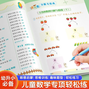 《儿童数学专项轻松练》是一套专为4-7岁儿童设计的数学启蒙教材,旨在帮助孩子顺利过渡从幼儿园到小学的学习阶段。该套书根据教育部颁布的《幼儿园教育指导纲要(试行)》 编写,内容涵盖《分解与组成》《凑十法》《破十法》《平十法》《看图列算式》《思维应用题》《时间与人民币》,全面训练孩子的运算技巧、运算熟练程度和数学知识的运用能力。