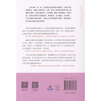 《陪你走过的365天》是“家庭生活教育丛书”中的一本,全书分春、夏、秋、冬四部分讲述家庭生活趣事,主要以对话串联情节,或插入经典诗词、儿歌,或引入经典绘本贯穿主题。篇幅短小精悍,内容丰富多彩、生动有趣,囊括了尊老爱幼、互帮互助、垃圾分类等有关道德品质、身体素质、生活技能、文化修养、行为习惯等方面的培育,注重从生活中挖掘育儿智慧,更好地提升孩子的生活能力及综合素养。