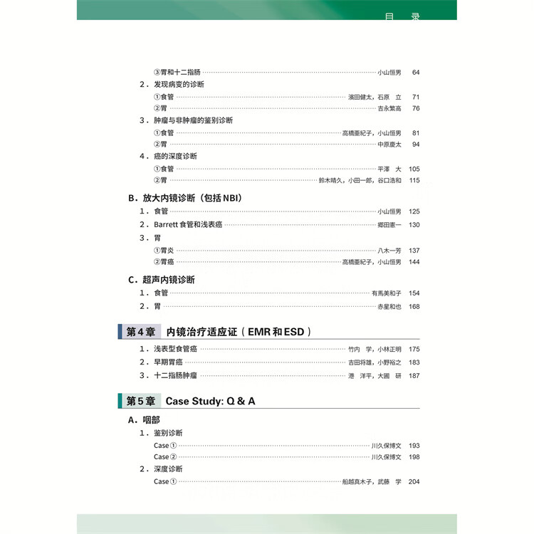 本书通过丰富的病例讲解,带领读者从最基本的观察开始,学习最新的胃肠疾病分型、肉眼分类以及提升诊断水平的技巧。全书不仅详细讲述了安全可靠的胃镜操作技法,而且通过大量高清镜下以及病理图片帮助医生提高诊断能力,对初中级医生从基础到临床实践全面学习、提升消化内镜操作水平来说是一本非常有价值的参考书。全书由四十余位日本临床一线专家共同编写,是一本集理论与经验于大成的权威著作,即便是未翻译的原版,在我国国内也受到了消化医生的喜爱。