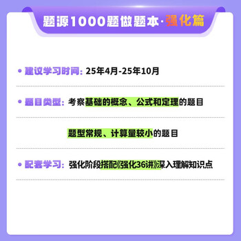 强化篇、综合篇题目难度趋于考研难度,旨在帮助学生加深对知识点的理解和掌握,提升计算能力和解题思维。