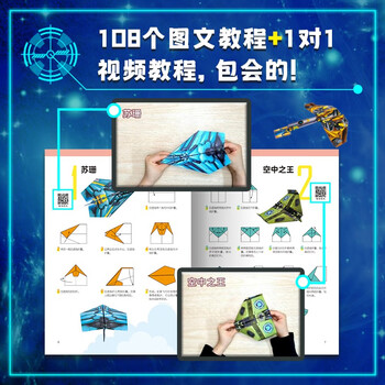 本书是一套锻炼孩子动手能力,帮助他们感知基础力学,让他们体会自由折叠、投掷纸飞机乐趣的玩具书。本书详细介绍了折纸飞机方法,并提供了独家专属材料。全套共设计了108款纸飞机样式,分上下两册,主要介绍了高性能的纸飞机,如:潜行者、夜行船、锤头飞机、旋风一号、魔力天牛等。每册配套108张全彩折纸飞机专用纸和一本纸飞机折叠步骤图册。孩子们只需对照步骤,就能折出不同款式的飞机。本书还讲解了纸飞机不同结构的名称,告诉孩子们如何正确投掷纸飞机。