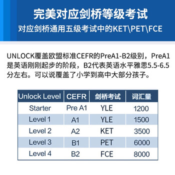 《UNLOCK》系列教材是英国剑桥大学出版社精心打造的“学术英语多媒体旗舰课程。正如它的书名UNLOCK所代表的那样,全面“解锁”孩子的学术英语能力和批判性思维能力,为以后的英语学习和应有做好充分准备。
