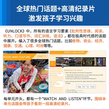 《UNLOCK》系列教材是英国剑桥大学出版社精心打造的“学术英语多媒体旗舰课程。正如它的书名UNLOCK所代表的那样,全面“解锁”孩子的学术英语能力和批判性思维能力,为以后的英语学习和应有做好充分准备。