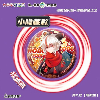 大中华寻宝记山海有灵徽章系列惊艳来袭!每包随机开出一枚精致拟人神兽徽章,帅气拟人造型,鲜明色彩展现经典国风。该徽章系列包含1款大隐藏款,光栅+珍珠膜工艺,人气神兽顶呱呱帅气变身;2款小隐藏款,红通通采用镭射金闪底+烫镭射金工艺,亮晶晶采用逆向镭射+浮雕工艺;9款常规款,银葱闪底工艺,随机掉落羞答答、白抛抛、毛茸茸等拟人神兽。徽章采用耐用马口铁材质,别针设计方便佩戴。纯享收集乐趣,解锁神兽拟人形象图鉴,是国漫迷和文创爱好者的绝佳收藏选择!(款式随机,以实物为准)。