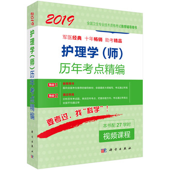 《2019护理学(师)历年考点精编》是全国卫生专业技术资格考试推荐辅导用书。《2018护理学(师)历年考点精编》按照护理学专业初级(师)新考试大纲的要求,在分析了近几年来千道考试试题、认真总结考试的命题规律后精心编写而成。《2018护理学(师)历年考点精编》分为重点提示和考点串讲两部分。重点提示部分列出了该考试单元(细目)的历年考试重点,提示应该掌握的重点内容,把握好复习的大方向。考点串讲部分按照考试大纲的要求展开,既考虑到知识点的全面性,又突出重点,对常考或可能考的知识点详细叙述,对需要重点记忆的知识点用波浪线的形式加以突出。两个部分的内容结合在一起,全面而有重点地准确把握考试的命题方向,掌握重要的考试要求和考试细节,是复习应考的必备辅导书。