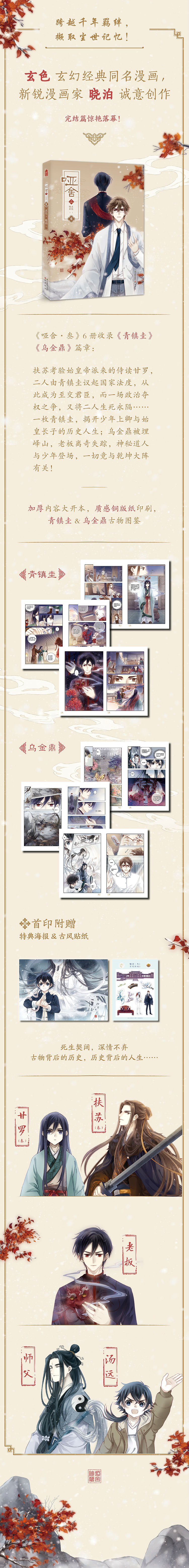 《哑舍·叁(漫画版)》由老板寻找十二件古物,用以镇压秦始皇乾坤阵厌气,阻止扶苏复国野心的时空之旅。完结卷带来《青镇圭》和《乌金鼎》的故事。