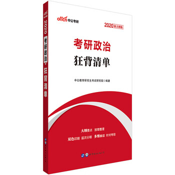 因印刷批次不同,图书封面可能与实际展示有所区别,增值服务也可能会有所不同,以读者收到实物为准《中公版·2020考研政治:狂背清单(新大纲版)》具有以下三大特色: