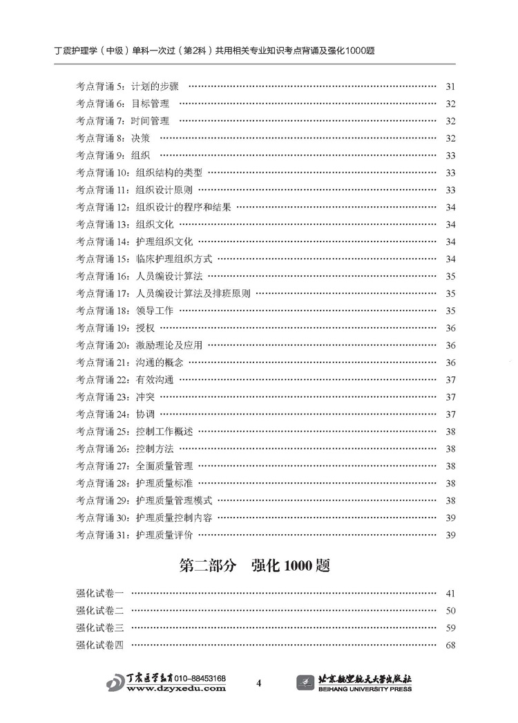 本书是护理学(中级)资格考试的复习参考用书,主要为上一年度主管护师主专业及各亚专业第2科(相关专业知识)考试未通过的考生编写。分为考点背诵和强化试题两个部分。考点背诵部分根据考试大纲对单科目考核的内容要求和历年考试命题情况编写,包括护理健康教育学、医院感染护理学和护理管理学三章。强化试题部分精选1000题,共10套试卷,供考生专项实战模拟,1000题均配有原创解析,对有干扰价值的选项逐项对比解析,帮助考生深刻理解考试重点。本书也可供首年参加考试习惯拆分为单科报考和复习的考生使用。
