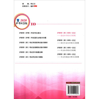 《2020护考应急包:护理学(师)单科一次过:基础知识特训1000题(第3版)》中内容结合近年考试真题和未来考试方向,紧密围绕护师资格考试基础知识单元的大纲要求,每个科目均包含“题解考点”与“牛刀小试”两大板块,分章节整理并甄选近十年的真题,采用“先试题、再解析、后答案”的编写方式,以点带面、以题串讲该单元考试内容,便于考生更加有针对性地复习和掌握重要考点;书末还附赠2套模拟试卷,便于考生实战演练,查缺补漏,从而高效备考、一举通关。