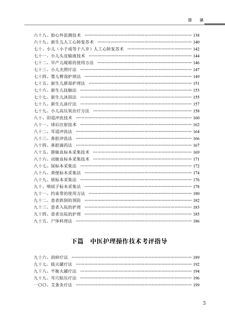 本书内容共分两部分:上篇为西医护理操作技术95项考评指导,下篇为中医护理操作技术35项考评指导。这130项护理操作技术涵盖了基础护理、急救护理、内科护理、外科护理、妇科护理、儿科护理、中医护理操作技术以及近几年开展的新护理操作技术。操作程序科学、规范、严谨、实用;操作质量标准和扣分点赋分精确;对操作前评估的要点、操作的目的、熟练程度、注意事项、护患沟通等内容进行了准确讲解。本书可作为临床护理工作人员和护理专业毕业生提高护理操作水平和临床技能的护理考核和培训教材。