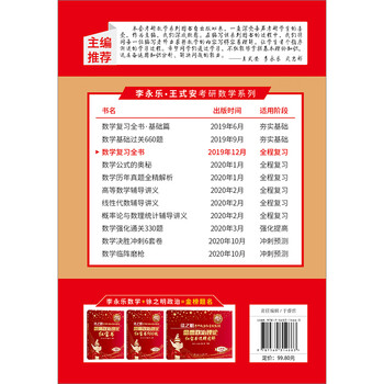 ★不得不说这是考研数学必备图书,基础知识点,概念公式都很全,例题也都很经典,一定要好好多做几遍,这本书真的很经典,多反复做几遍比多做几本书的效果要好很多。