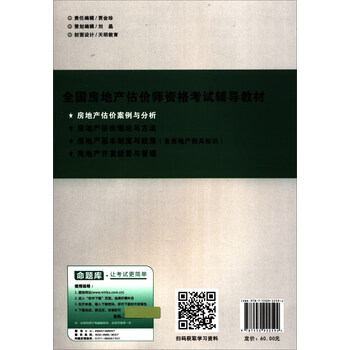 《房地产估价案例与分析》包含了现行考试大纲要求的知识点和考点,并且每章由知识导图、考情分析、表解考点、考点详解、跟踪训练和参考答案及解析等六部分组成,内容详实,有利于考生全面掌握考试内容,把握重点,全面复习。
