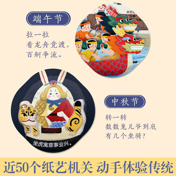 2、趣味机关,翻翻+拉拉+立体+转盘,符合孩子好动特点,体验更深刻,让孩子爱上中国传统文化