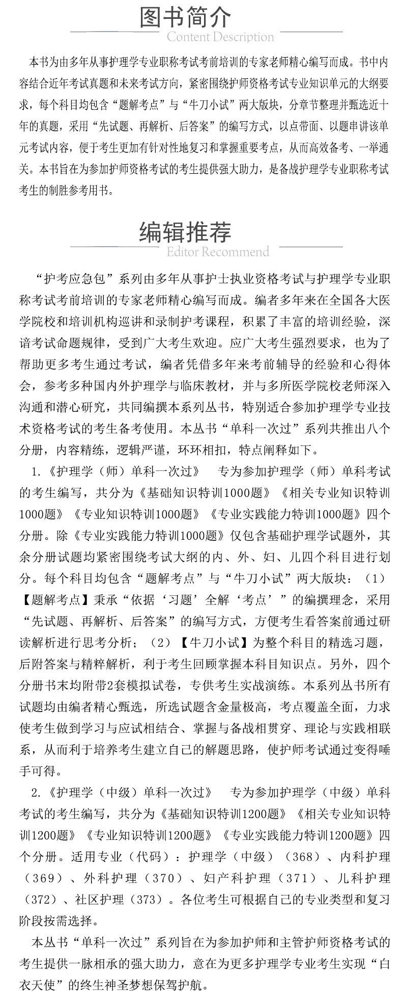 2020护考应急包·护理学(师)单科一次过:相关专业知识特训1000题(第三版)