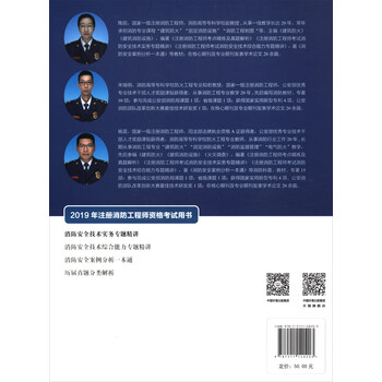 陶昆,国家一级注册消防工程师,消防高等专科学校副教授,从事一线教学长达20年。常年承担消防专业课程“建筑防火”“固定消防设施”“消防工程制图”等。主编《建筑防火》《建筑消防设施》,编著《注册消防工程师考点精炼及真题解析》《注册消防工程师考试消防安全技术实务专题精讲》《注册消防工程师考试消防安全技术综合能力专题精讲》,著《消防安全案例分析一本通》等教材;在核心期刊及专业期刊发表学术论文20余篇。宋瑞明,消防高等专科学校防火工程专业知名教授,国家一级注册消防工程师,公安部优秀专业技术干部人才奖励津贴获得者。从事消防工程专业教学20年,先后编写消防教材、专著10部;参与完成公安部消防局课题1项,省级课题1项:获得国家实用新型专利4项、公安消防部队改革创新大赛技术研发奖1项;在核心期刊及专业期刊发表学术论文20余篇。