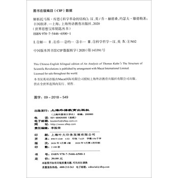 本书是我社引进图书"世界思想宝库钥匙丛书"中的一种,主要内容是解析二十世纪美国科学史家、科学哲学家托马斯·库尔的《科学革命的结构》。全稿从学术渊源、学术思想、学术影响三个方面,对《科学革命的结构》做了较为详尽的论述和分析。透过此,读者可以一睹托马斯·库恩生平事迹与其学术流变之大概。对有志于深入了解欲登堂入室者来说,这是一本值得一读的入门读物。对于在读的高校本科生来说,是一本上佳的人文通识读本。