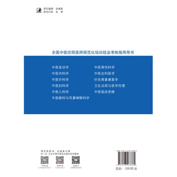 本套书由国家中医药管理局中医师资格认证中心组织编写,为全国中医住院医师规范化培训结业考核指导用书,涉及11科目。包括中医内科学、中医外科学、中医妇科学、中医儿科学、针灸推拿学、中医骨伤科学、中医急诊科学、中医五官科学、中医全科学、中医临床思维和卫生法规。