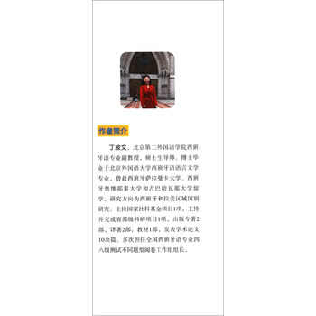 丁波文,北京第二外国语学院西班牙语专业副教授,硕士生导师。博士毕业于北京外国语大学西班牙语语言文学专业,曾赴西班牙萨拉曼卡大学、西班牙奥维耶多大学和古巴哈瓦那大学留学,研究方向为西班牙和拉美区域国别研究。主持国家社科基金项目1项,主持并完成省部级科研项目1项,出版专著2部,译著2部,教材1部,发表学术论文10余篇。多次担任全国西班牙语专业四八级测试不同题型阅卷工作组组长。
