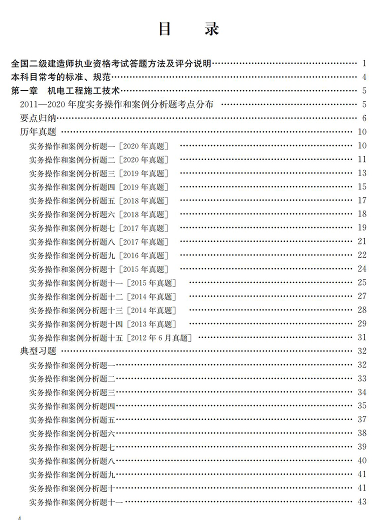 在二级建造师考试中,《专业工程管理与实务》科目一直是广大考生的拦路虎,二实务科目中的案例分析题更是让广大考生深感棘手。为了帮助广大考生在短时间内掌握案例分析题的重点和难点,迅速提高应试能力和答题技巧,更好地适应考试,组织二建考试培训领域的权威专家,根据考试大纲要求,以历年考试命题规律及所涉及的重要考点为主线,精心编写了本书。本书以案例模块为重点,对每个模块分别收集了历年考题并编写了对应的练习题目,帮助考生应对执业资格考试中的案例分析试题。